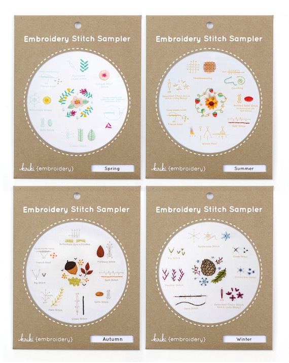 Four Seasons Set Embroidery Stitch Sampler Etsy Uk